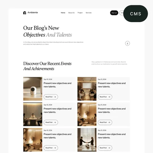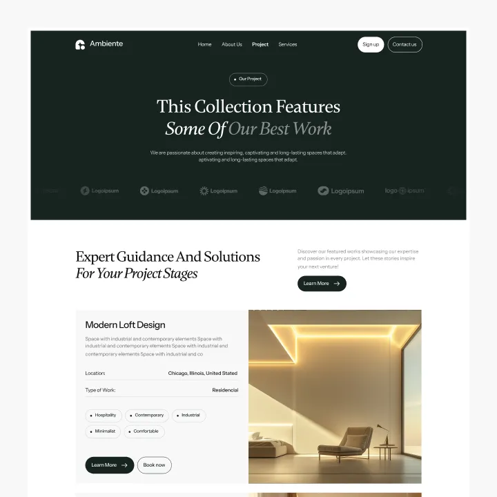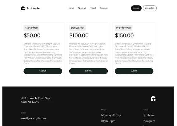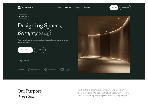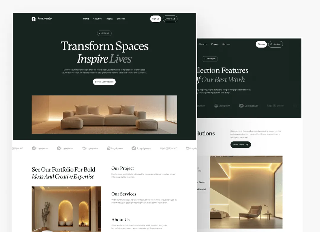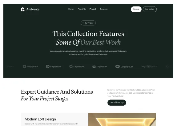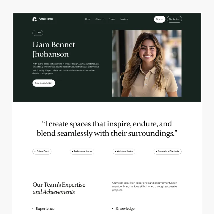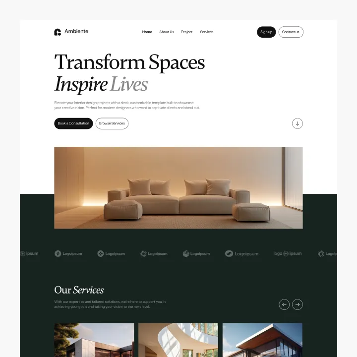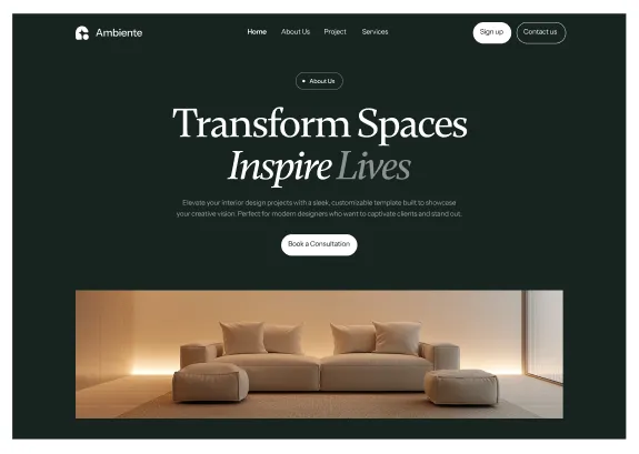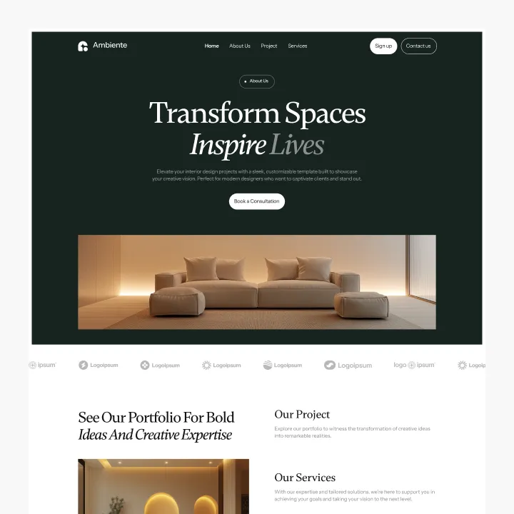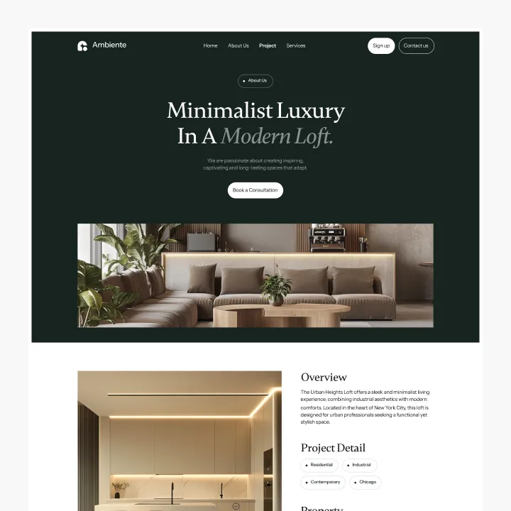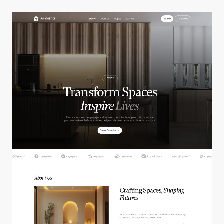 Ambiente Webflow Template offers customizable header and footer, seamlessly adapting to your business needs.