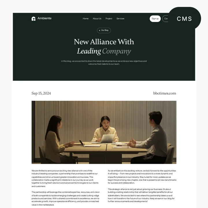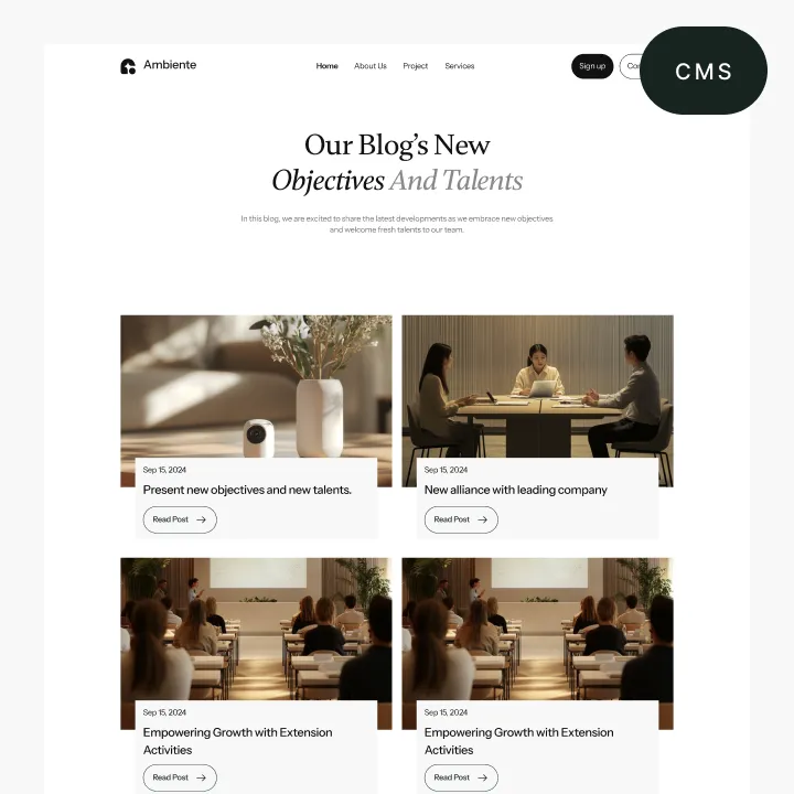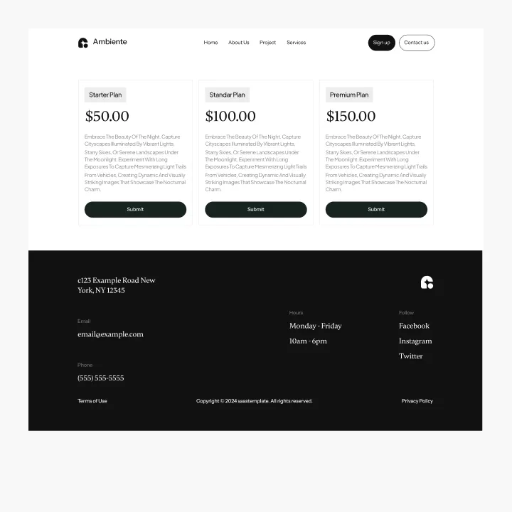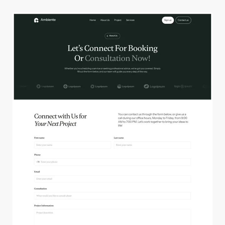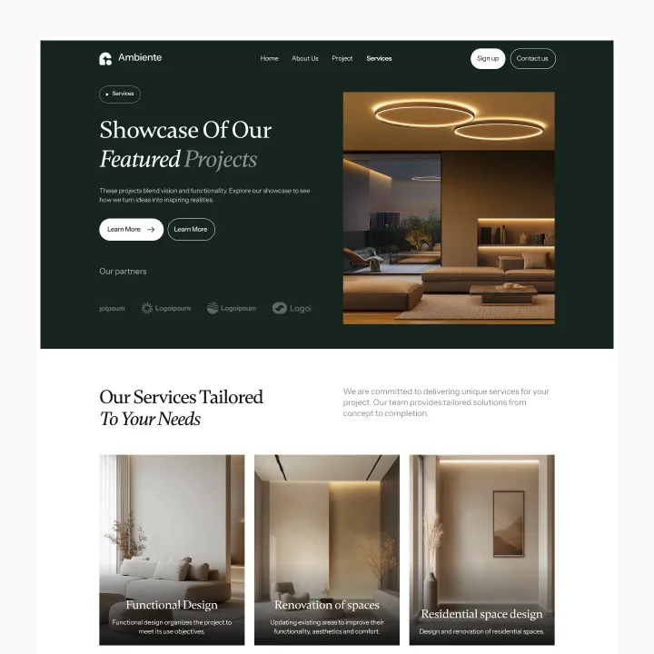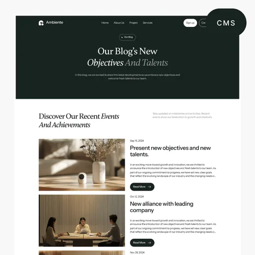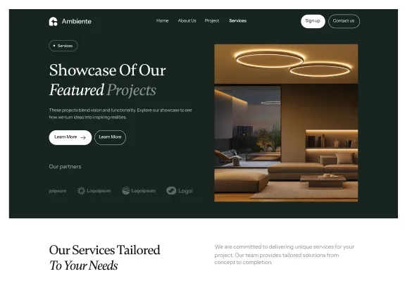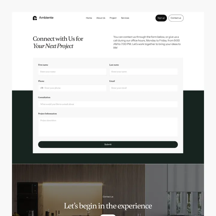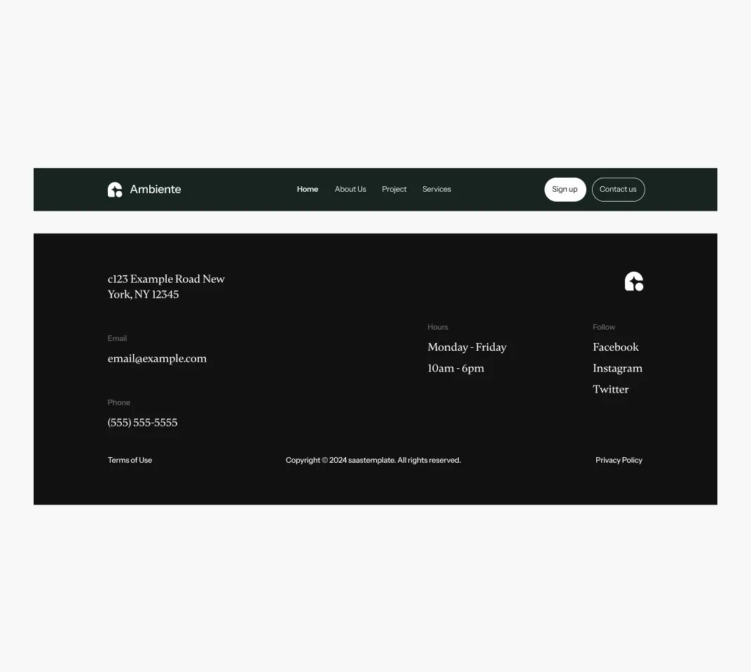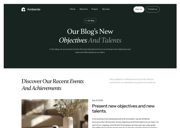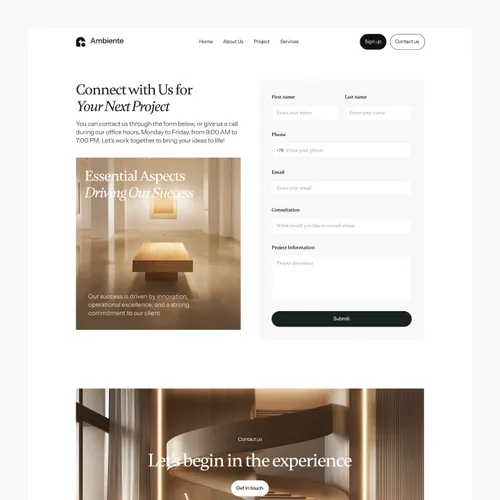 Ambiente Webflow Template offers customizable header and footer, seamlessly adapting to your business needs.