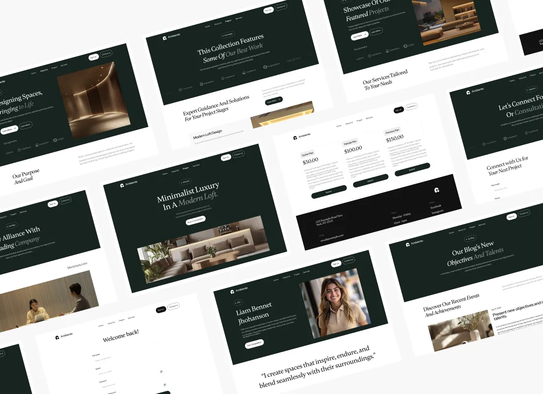 Ambiente Webflow Template includes over 12 pages in total, with more than 25 sections.